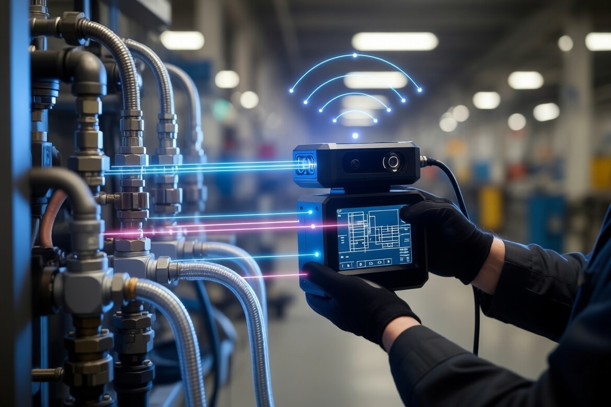 Multi-sensor inspection platform that captures six dimensions of reality in a single walk-down. Physics-validated. Cross-sensor confirmed. Audit-ready.