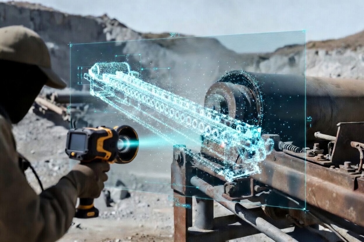 Stackers, reclaimers, conveyors, screens, crushers — geometry and structural integrity verified across the full material handling chain.